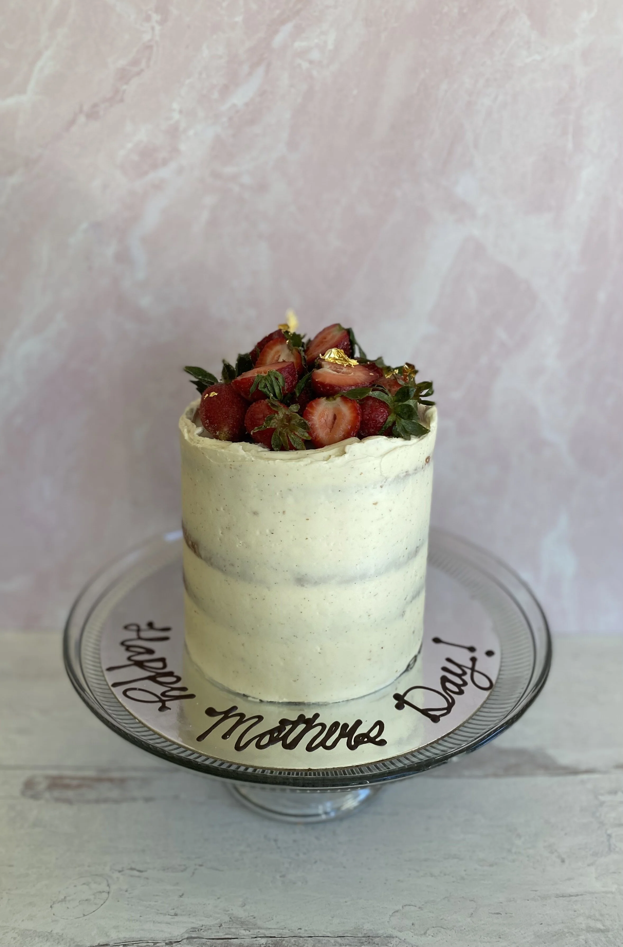 6” - Prosecco soaked vanilla chiffon, strawberry prosecco jam, and vanilla buttercream.