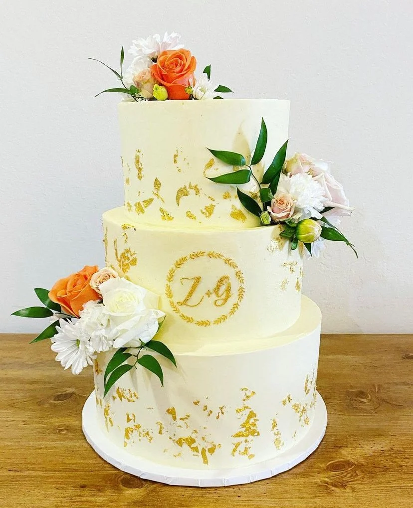 6”/ 8” - Almond orange cake, Amaretto syrup, fig jam, almond vanilla buttercream, spun sugar crown and organic fresh flowers. Decoration customizable.