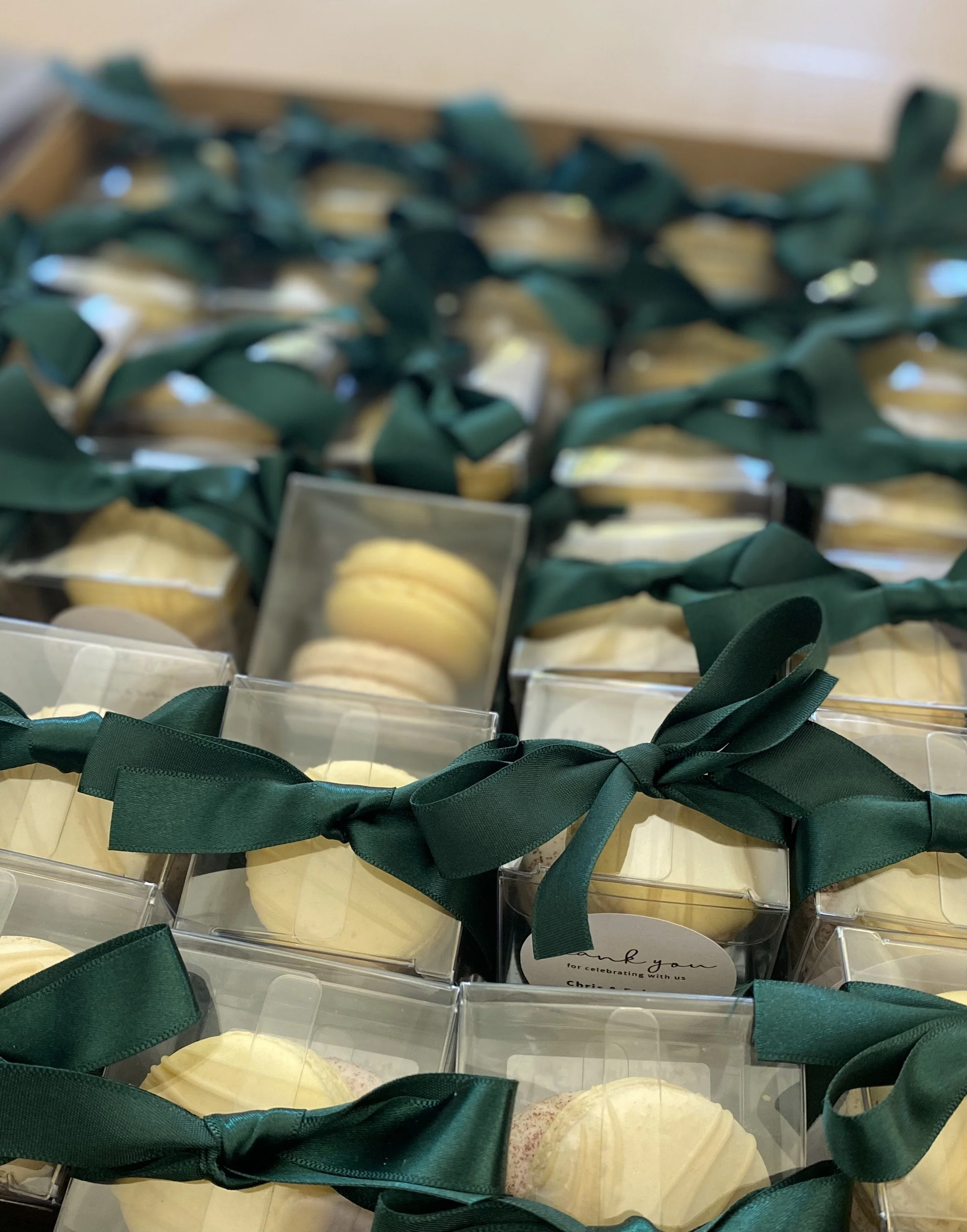 60 small pastries, up to 6 different flavors, individually wrapped and boxed in decorative packaging. Option to add a personalized note.